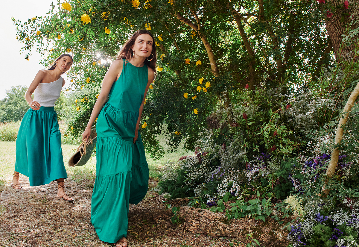 Женските модели од колекцијата за лето 2020, која е 100% одржлива колекција, се направени од природни материјали во разиргани бои дополнети со цветни дезени.