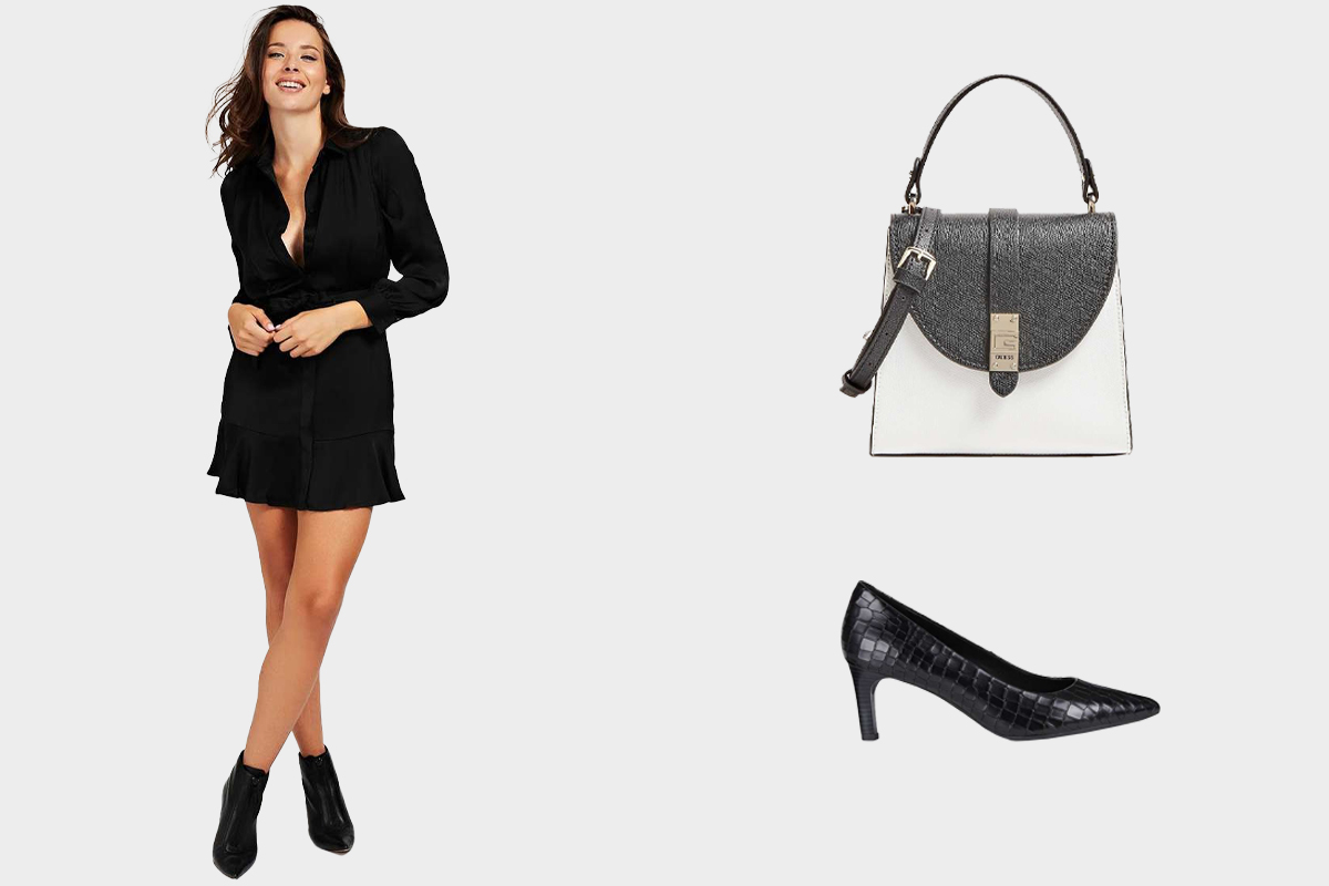 Фустан, чанта: GUESS, Чевли: GEOX