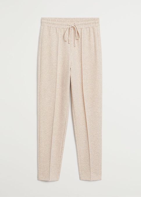 Покрај класичното стилско карирано палто и едноставната, но секогаш привлечна бела маичка на куси ракави, во есенската комбинација актерката вметна памучни панталони налик тренерки во неодолива крем нијанса.