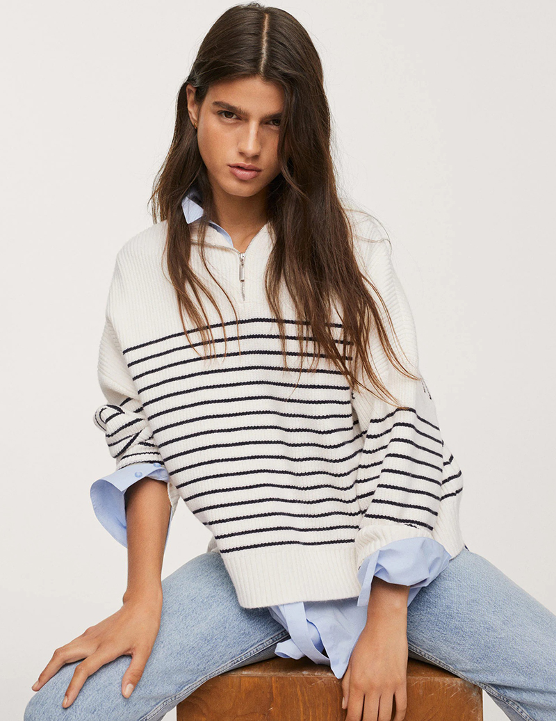 Како еден од омилените модели за оваа сезона дефинитивно се издвојува предимензионираниот џемпер во пруги, особено оние со патент во предниот дел кај јаката. За комбинирање на истите не треба многу труд, па така истите се одлични за оние утра кога сакате да изгледате шик или немате премногу време, па го одбирате овој џемпер со шик фармерки, стилски мантил и чизми и уживате во денот.